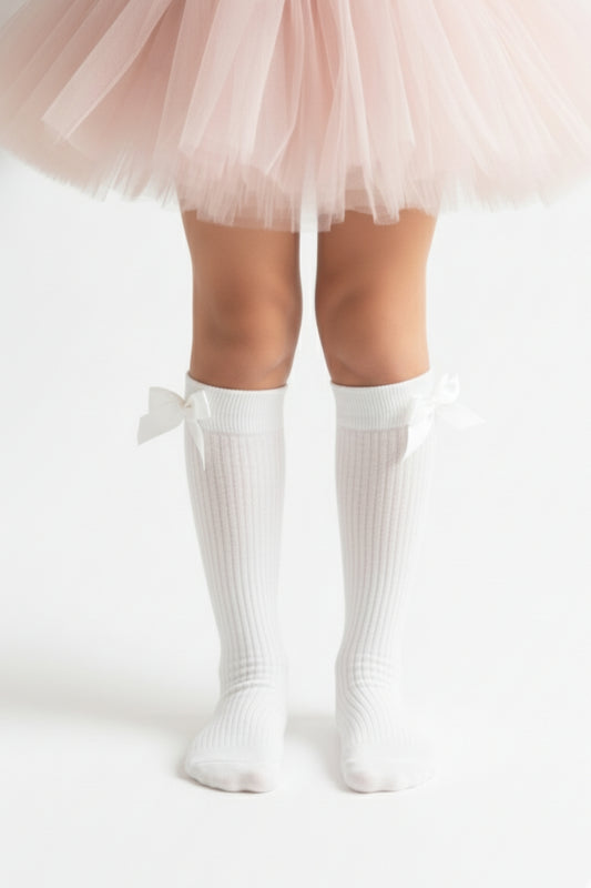 Mädchen Kniestrümpfe mit Schleifen - süße knielange Strümpfe weiß