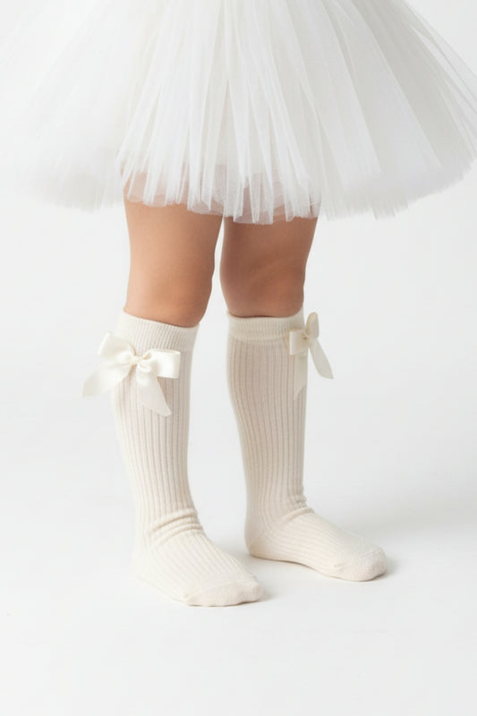 Mädchen Kniestrümpfe mit Schleifen - süße knielange Strümpfe creme
