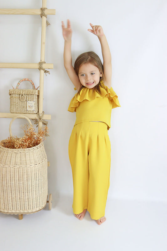 Gelber Zweiteiler Ruffle - Oberteil mit Rüschendetails und Hose